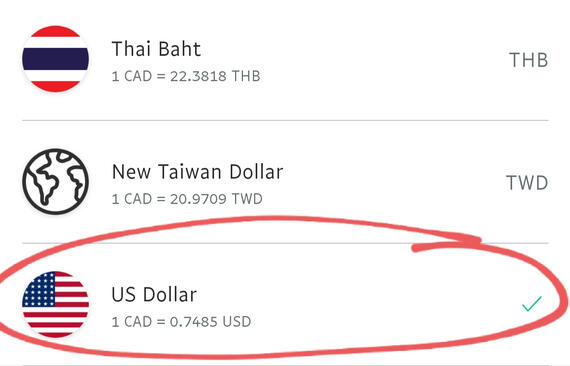 2. A menu with all the currencies Paypal accepts will open up. Scroll down to find and select USD.